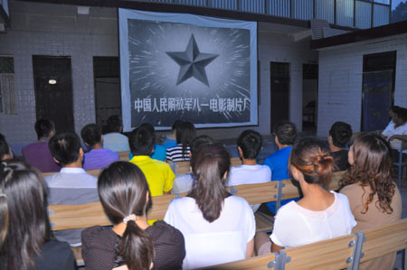 為紀(jì)念中國共產(chǎn)黨成立91周年,加強廣大員工的思想政治教育,激勵其繼承黨的優(yōu)良傳統(tǒng),大力發(fā)揚求真務(wù)實的工作作風(fēng)和無私奉獻(xiàn)的敬業(yè)精神。在黃陵縣店頭鎮(zhèn)人民政府和文化站大力支持下,7月15日20時,一場以“迎黨建、弘黨風(fēng)”為主題的紅色觀影活動在廣通黃陵分公司建新、建莊礦員工之家隆重展開,除值班人員外,分公司黨員、預(yù)備黨員、各部門員工共 40多人與當(dāng)?shù)卮迕窆餐瑓⒓恿诉@次觀影活動。